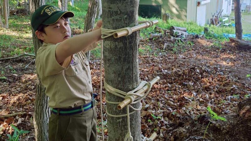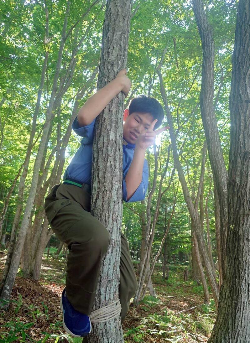あまり高いところまで登ることはありませんでしたが、普段の活動とは異なる自然環境での体験に、スカウトたちはとても楽しみながら積極的に取り組んでいました。新緑の森の中での活動は、心身のリフレッシュにもなり、仲間との絆を深める良い機会にもなりました。