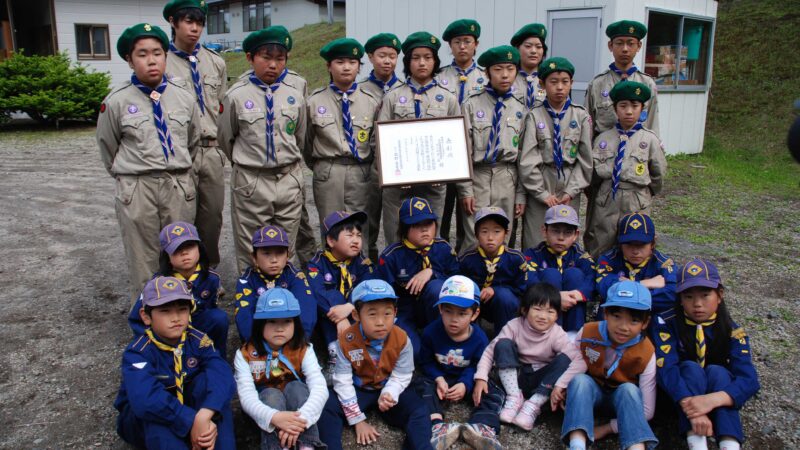 2009年6月13日、ボーイスカウト苫小牧第2団では、スカウトハウス前で初めてのお茶会を開きました。さわやかな初夏の風が吹く中、いつもの集会とは少し違う静かな時間が流れます。その前には、団が長年取り組んできた麻薬乱用防止活動の功績が認められ、表彰を受けるといううれしい出来事もありました。表彰の様子を取材するために苫小牧民報社の記者も訪れ、スカウト全員が表彰状を囲んで記念撮影を行いました。その日の夕刊には、活動の紹介記事が掲載され、地域の皆さんにもボーイスカウトの取り組みを知っていただく機会となりました。