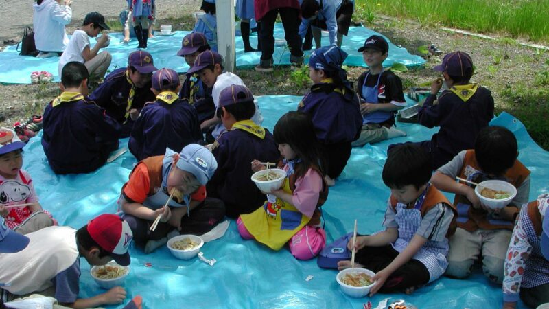 祭り当日のスカウトたちの昼食は、餅ではなくうどんやそばとなりました。寒い季節に温かい食事を囲みながら、スカウト同士の絆をさらに深める時間にもなりました。