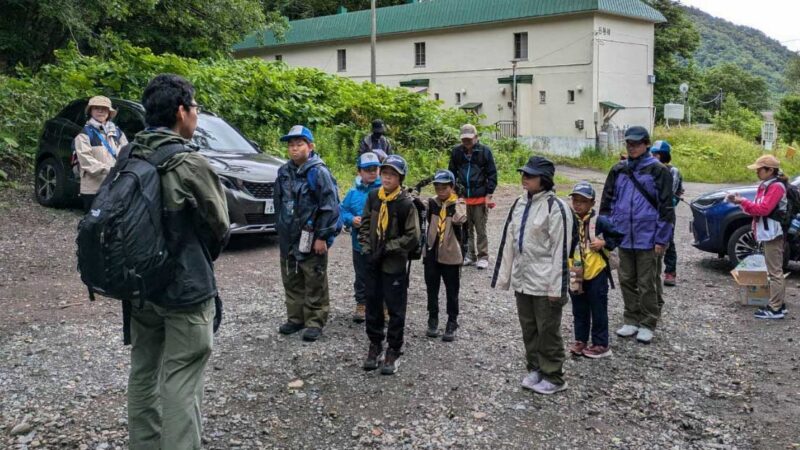 朝から曇天に覆われ、山頂からの絶景は期待できませんでしたが、参加者は山頂目指して一丸となって登りました。コースタイムは登り80分、下り60分で設定されており、安全に楽しく登れる工夫が施されています。とくに、途中の休憩ポイントでは、各隊のスカウトが協力し合いながら自分のペースを守り、多くの思い出を作る場となりました。
