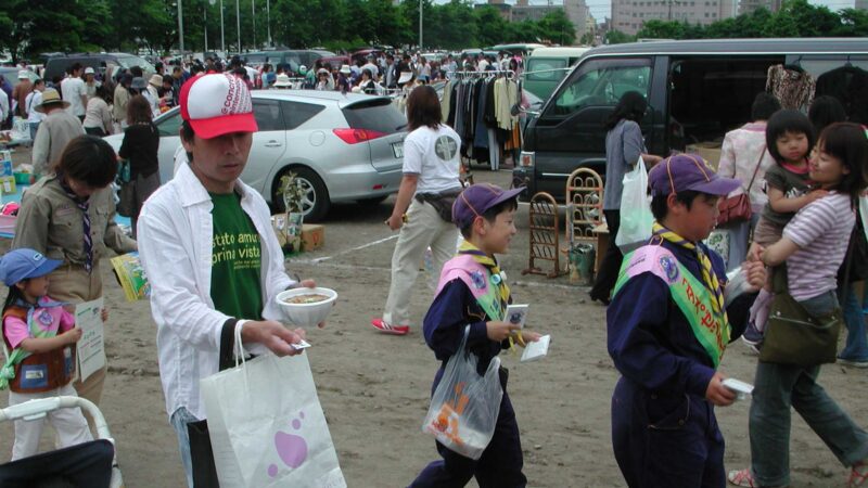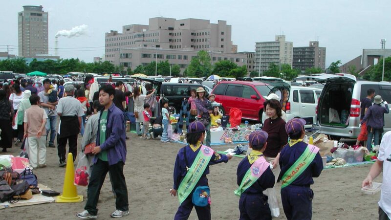 毎年6月の最終日曜日、苫小牧市で開催されるフリーマーケット会場にて、ボーイスカウト苫小牧第2団は恒例の麻薬撲滅運動に参加しています。この活動は、地域の安全と子どもたちの健全育成を願う重要な行事として団の伝統となっています。