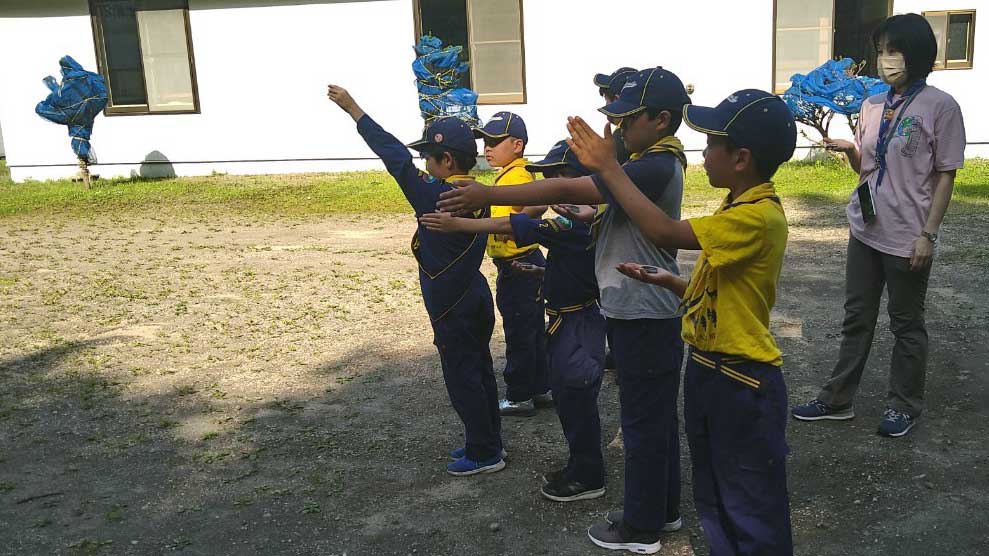 実践の時間では、リーダーの指示に従い、ペアやグループで協力しながら指定された方角に向かって進んでみる試みを行いました。 最初は戸惑うこともありましたが、徐々に磁石の指す方向を信じて歩く楽しさを感じ、達成感に満ちた笑顔があふれました。 こうした体験は、地図や GPS に頼らずに自分の力で道を切り開くスカウトの基本を育む大切な時間となりました。