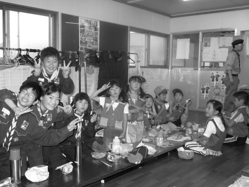 2023年8月に開いたボーイスカウトのOB会に来たメンバーのスカウト時代の姿がいっぱい写っていますね。
