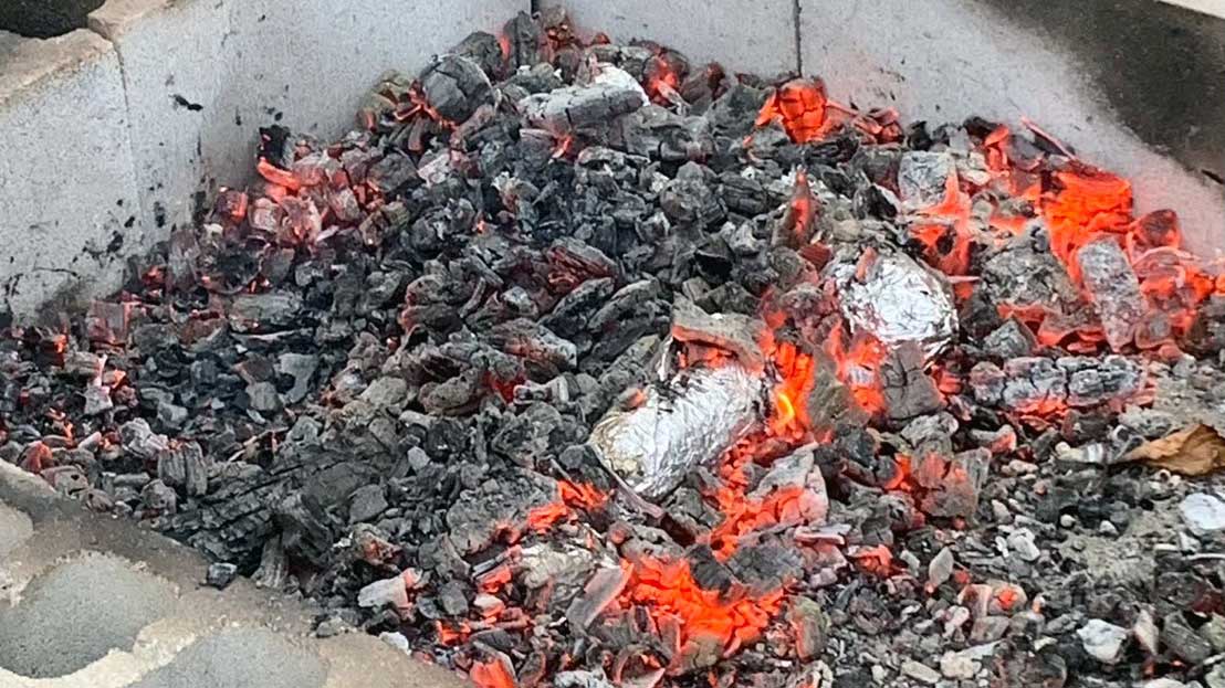 ボーイ隊は、ブロックでかまどを組み、熾きをたくさん作ってサツマイモを焼きました。火加減の調整は経験が必要で、焼き時間の管理も注意深く行われました。焼け具合の確認は竹串を刺して実施し、適切な焼き上がりを見極めました。