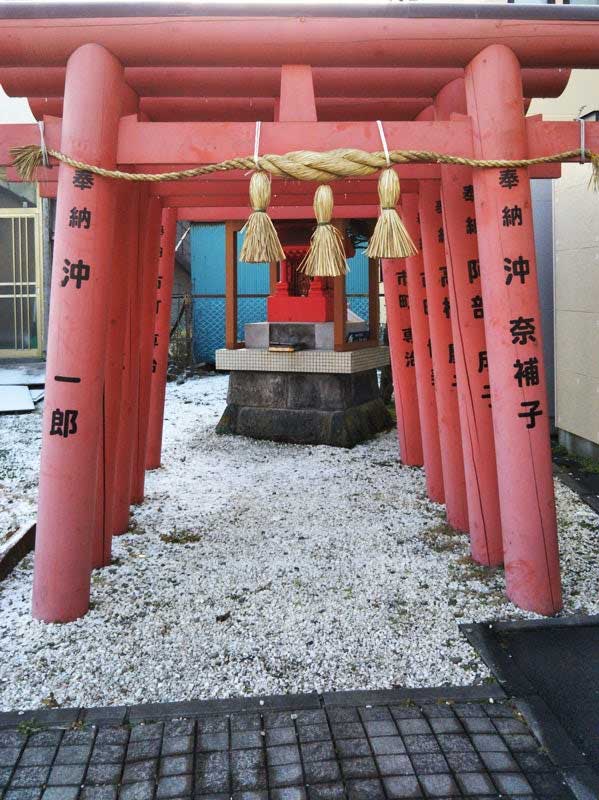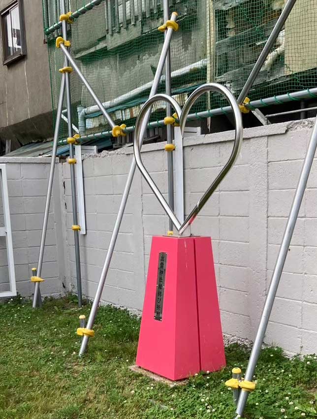 続いて南方面へ。 細い路地を入ると右手に苫小牧市内でも有名な錦町出雲神社の鮮やかな朱色の鳥居が見えてきました。 地元でも人気の神社で、お祭りなども開かれている歴史あるお社です。 さらに西側へ進むと、道沿いにハートマークのオブジェが出現。 その奥には大町寿稲荷神社がひっそりと佇んでいました。 まち歩きは、身近な場所に思いがけない出会いがあるのも醍醐味です。