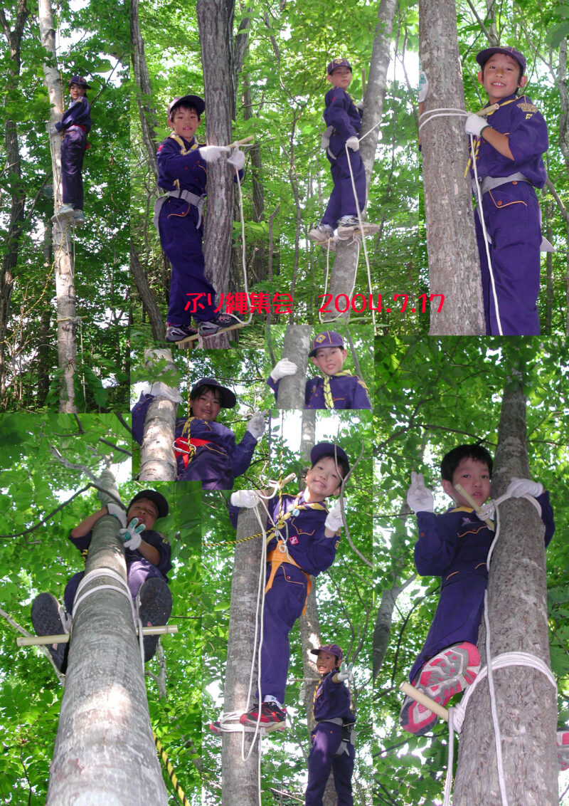 初めてのぶり縄集会では、リーダー手作りの子ども用ハーネスを使い、安全に高いところまで登りました。高所での活動に挑戦し、大きな達成感と自信を得ました。挑戦する気持ちを育てる貴重な機会でした。