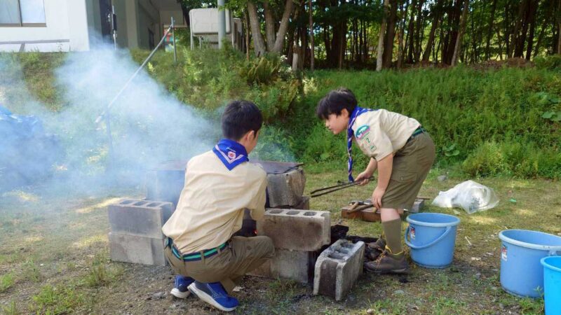 午後になると、そろそろ片付けの時間です。スカウトたちは率先して後片付けに取りかかり、机やイスを運び、炭の始末をし、道具を洗って整頓します。どの子も自分の役割をしっかりと果たし、協力しながらスムーズに作業を進めました。最後は全員が並んで閉会式を行い、指導者からの講評とお礼の言葉をいただいて解散。時計の針は午後2時を少し回ったところでした。